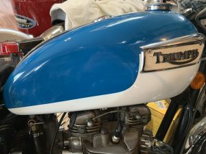 This lovely two owner Triumph TR6C in pacific blue is a matching numbers bike with 14,146 original miles. It is in beautiful original condition and runs and drives like new.